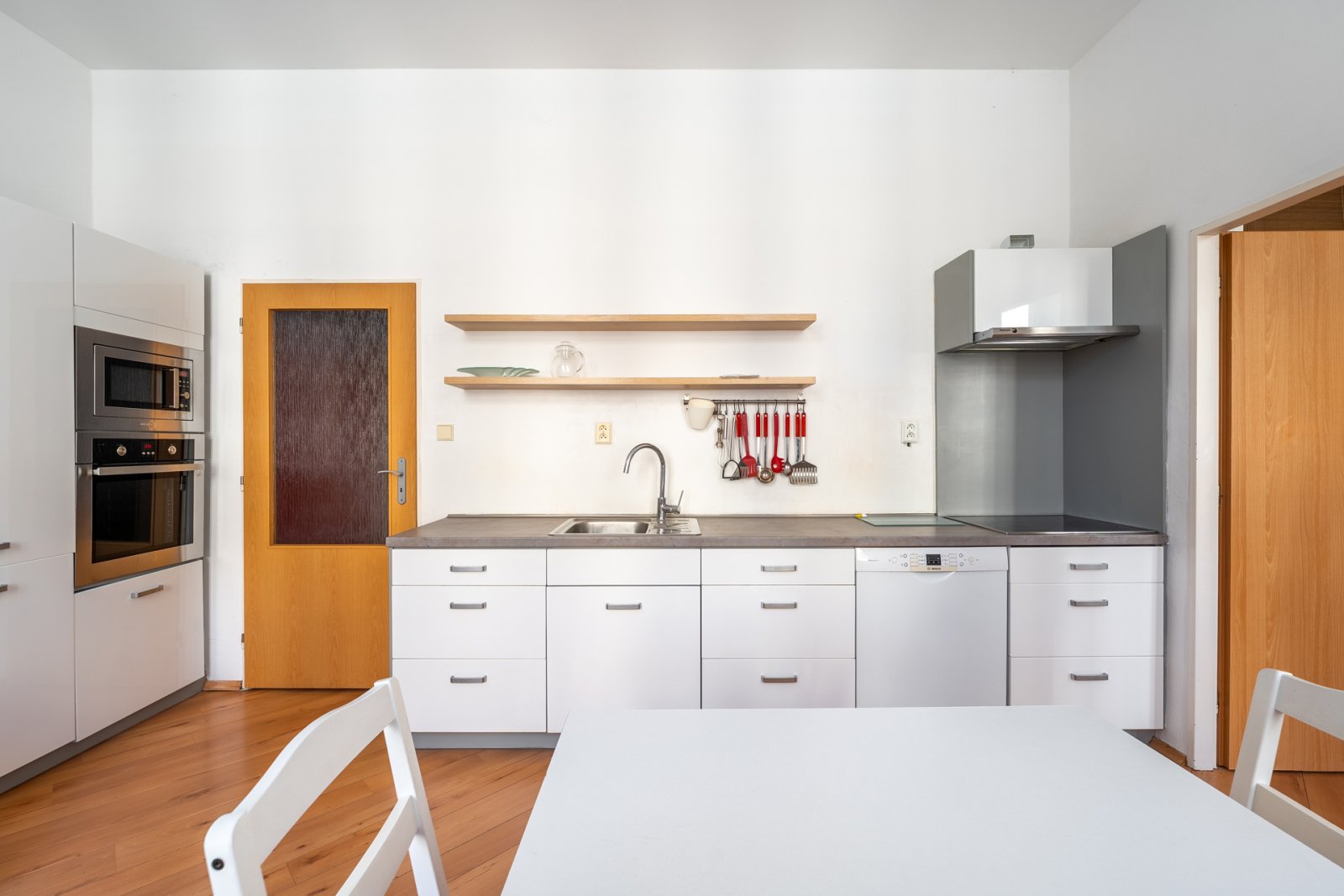 myčkou, varnou deskou, troubou a digestoří, a dále ložnice s vestavěnou