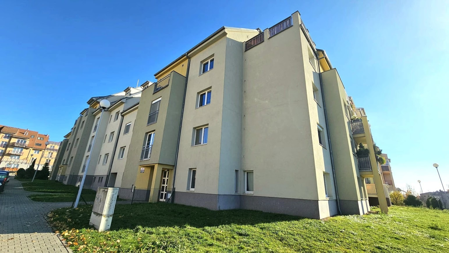 situovaný v klidné části Brna – Líšeň, na ulici Poslušného. Byt je